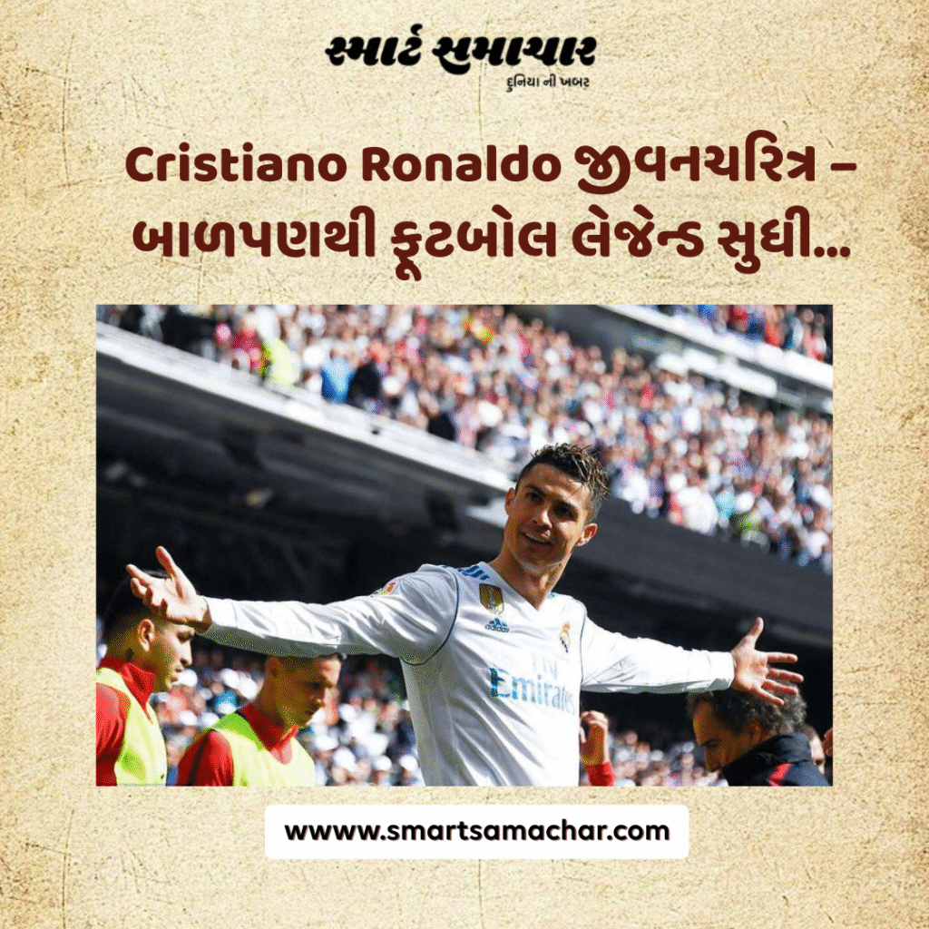 Cristiano Ronaldo જીવનચરિત્ર વાંચો – બાળપણથી લઈને ફૂટબોલની દુનિયાના લેજેન્ડ બનવાની તેમની પ્રેરણાદાયક સફર, સંઘર્ષ, રેકોર્ડ્સ અને સફળતાની સંપૂર્ણ માહિતી અહીં મેળવો.