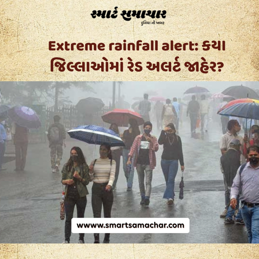 Extreme Rainfall Alert: ગુજરાતના કયા જિલ્લાઓમાં રેડ એલર્ટ જાહેર થયું છે? મોસમ વિભાગનું તાજું પૂર્વાનુમાન અને સુરક્ષા અંગેની માહિતી વાંચો.”