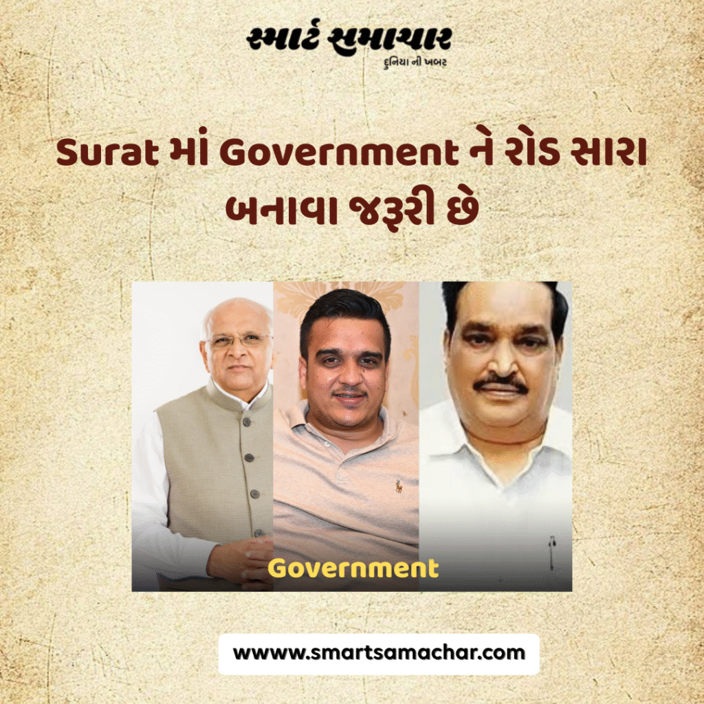 Surat માં સરકાર માટે સારા રસ્તાઓ બનાવવું અને હાલના માર્ગોની સુધારણા કરવી અત્યંત જરૂરી છે. સારી માર્ગવ્યવસ્થા નાગરિકોની સલામતી, સમય બચત અને શહેરના વિકાસ માટે મહત્વપૂર્ણ છે — જાણો શા માટે સરકારને સુરતના રસ્તાઓ સુધારવા જોઈએ.